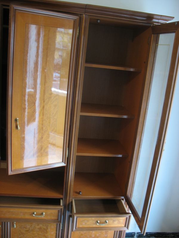 - Credenza da sala molto capiente in buone condizioni. Lunghezza 3,36 cm, profondità 43 cm, altezza 2,19 cm. Adatto sia ad un ambiente classico sia moderno. Composto quattro scomparti: una zona a vetrina doppia, una zona con spazio porta televisore, zona a sportelli chiusi con ripiani interni e un vano a vista, e una zona a vetrina singola. Ogni zona è dotata di cassetto. Euro 350. Il trasporto e lo smontaggio è a carico dell'acquirente da effettuarsi a San Pietro in Casale, in provincia di Bologna. Per informazioni contattare Paola 348-0466361