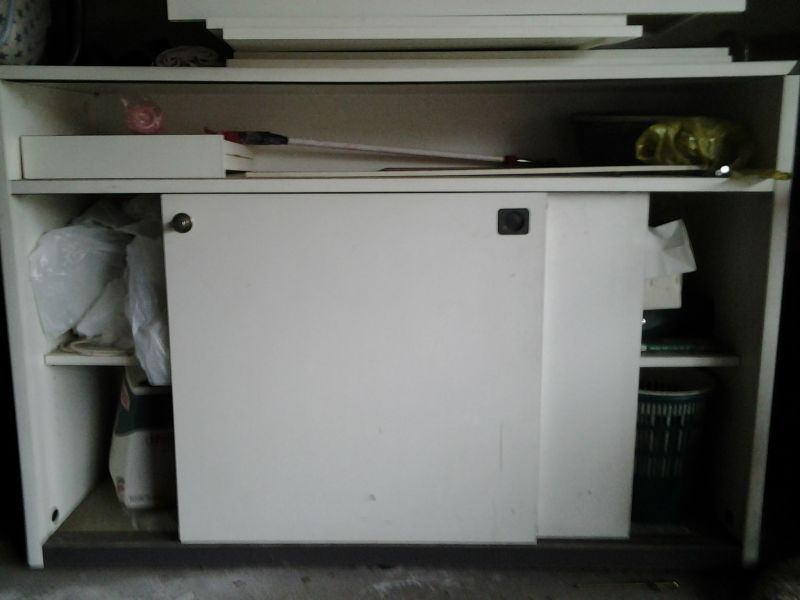 • Bancone ideale x negozio/ufficio, 2 ante scorrevoli misure 100x150x 80, laminato bianco con profilo grigio € 100.00