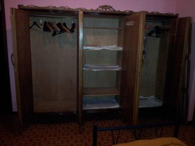 • vendo camera completa di letto matrimoniale con 2 materassi in lana essendo il letto degli anni 50,come si usavano. comò armadio e 2 comodine tutto sullo stesso stile. la camera è in buono stato. la venderei a € 200,00 trattabili