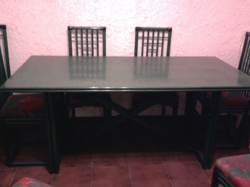 - Vendo mobile basso, per sala,con tavolo ed otto sedie di colore verde scuro ed in legno,il tutto in buone condizioni,vendo causa trasloco.Ritiro a carico dell'acquirente ed al piano terra a San Donato Milanese.