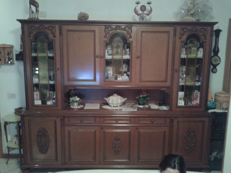 - Vecchia credenza in noce, conservata benissimo, arazzo interno in velluto e bellissimi ricami esterni come da foto, il mobile e' stato costruito in due parti; per eventuale trasporto si possono separare solamente la parte superiore da quella inferiore,per eventuali info. su misure o trasporto ecc. contattatemi
