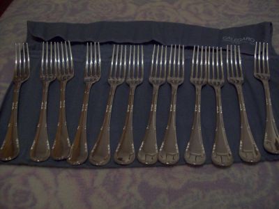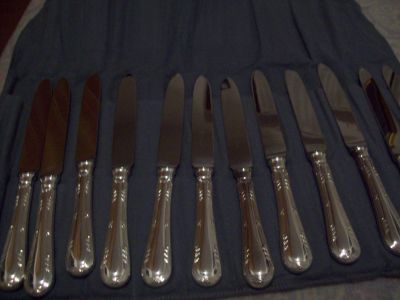 - NUOVO!!! MAI USATO BELLISSIMO SERVIZIO DI POSATE IN ARGENTO 800/°°° (no placcato) - ASSOLUTAMENTE NUOVO MAI USATO! N. 129 PEZZI TRA POSATE E MESTOLI + CUSTODIA-PANNO COLORE GRIGIO. PRODOTTO DA CALEGARO ARGENTIERI DAL 1921 PESO TOTALE DEL SERVIZIO CIRCA GR. 6050 solo dell'argento, tutto il servizio pesa più di 8 kg. (se ne tenga conto per la considerazione dei coltelli) COSI COMPOSTO: N.24 FORCHETTE TAVOLA N.12 CUCCHIAI TAVOLA N.12 COLTELLI TAVOLA N.12 FORCHETTE FRUTTA N.12 COLTELLI FRUTTA N.12 FORCHETTE DOLCI N.12 FORCHETTE PESCE N.12 COLTELLI PESCE N.12 CUCCHIAINI DA CAFFE' N. 2 POSATE PER SERVIRE IL PESCE N. 2 POSATE PER SERVIRE IL DOLCE N. 2 POSATE INSALATA PLEXI 1 FORCHETTA-1 CUCCHIAIO (IN ARGENTO 800 SOLO IL MANICO) N. 1 CUCCHIAIO GROSSO DA PORTATA N. 1 FORCHETTONE N. 1 MESTOLO PER BRODO VALORE COMMERCIALE CIRCA EURO 6200,00 LE FOTO RAPPRESENTANO IL SERVIZIO DESCRITTO VERAMENTE NOTEVOLE LUCIDO E A SPECCHIO Euro 3900 tratt
