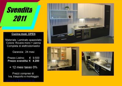 - Svendita cucine di esposizione scontate dal 40% al 50% con 2 anni di garanzia e pagamento a 12 mesi tasso 0% Stampa questo annuncio e presentalo presso la nostra esposizione di Lissone In via caprera n.7 oppure per altre info contattaci a : info@t3lissone.it Se vuoi ricevere sconti sul nuovo puoi iscriverti alla ns. Newsletter sul sito www.t3lissone.it Collegati al ns. sito e scarica gratis le 900 immagini d’arredamento e novità, oltre a scaricarti le offerte del mese Ti aspettiamo