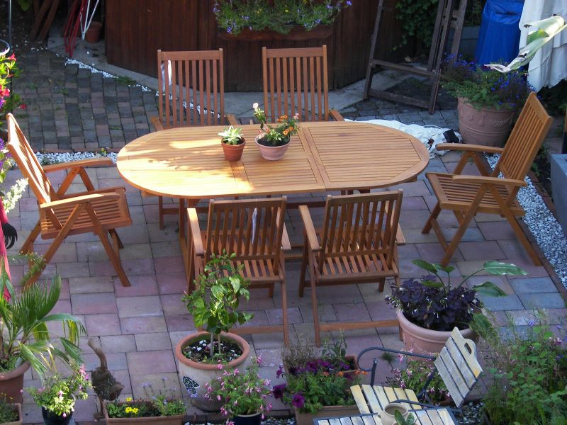 - NUOVO Set 1 tavolo con 6 sedie Con il comodo sistema 'Butterfly', è possibile estendere il tavolo, in modo rapido e facile. Le sedie sono regolabili in 5 posizioni, in modo da poterle utilizzare anche come sedie a sdraio Siediti, rilassati e goditi l'estate in giardino. L'arredamento è realizzato in legno eucalyptus resistente agli agenti atmosferici. - Dimensioni tavolo chiuso: Lunghezza 150 cm - Dimensioni estese tavolo: lunghezza 200 cm, larghezza 100 cm altezza x 74 cm La fornitura comprende: - 1 tavolo - 6 sedie - attrezzi di montaggio Le sedie vengono fornite montate! Per proteggere le foreste del mondo dalla distruzione e per garantire uno sviluppo, sostenibile e di buon uso, mettiamo a disposizione, in misura sempre maggiore, la nostra gamma di certificazione FSC. Spedizione tramite corriere DHL tempo di attesa ricezione merce: ca. 7gg. Metodi di pagamento accettati: Bonifico bancario - PostePay - PayPal
