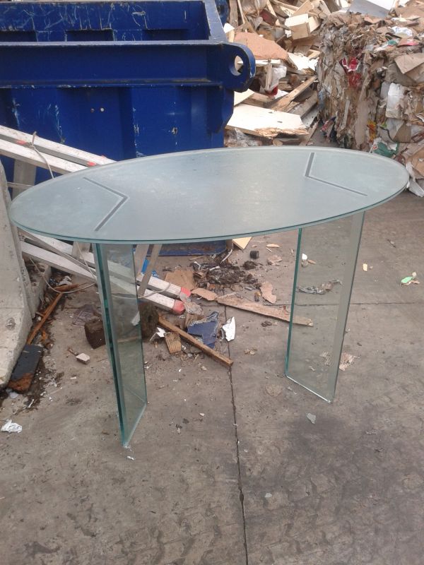- Originali tavolo e specchiera in vetro; specchiera con sostegno in acciaio,il tavolo in vetro invece pur molto bello e particolare necessita di restauro di mani esperte perche' 'sbeccato' nella zona gambe,oggetti comunque molto originali