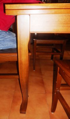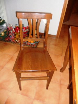 - Tavolo apertura a libro impiallacciato in noce tinto scuro, ottimo stato. Misure (chiuso): 105 x 105 Misure (aperto): 210 x 105 4 sedie in noce tinto scuro; sedile in massello. Ottimo stato. Euro 600,00 Possibilità di avere 4 sedie in più ad € 160,00. 339-5389664