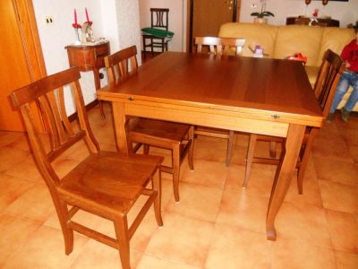 Tavolo raddoppiabile con 4 sedie in noce massello