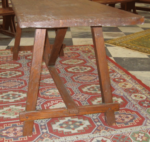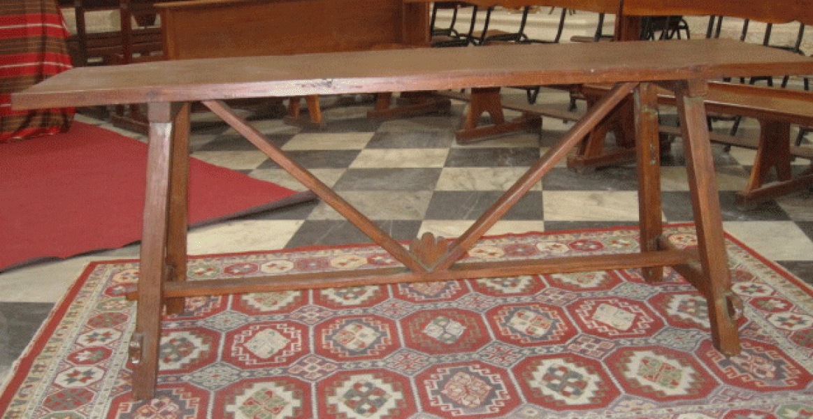 • Tavolo a capretta di legno di larice misura 2 m x 70 cm di larg. h 80 cm da utilizzare anche come scrittoio o tavolo vendita ecc. già restaurato, no tarlo, trasporto da concordare