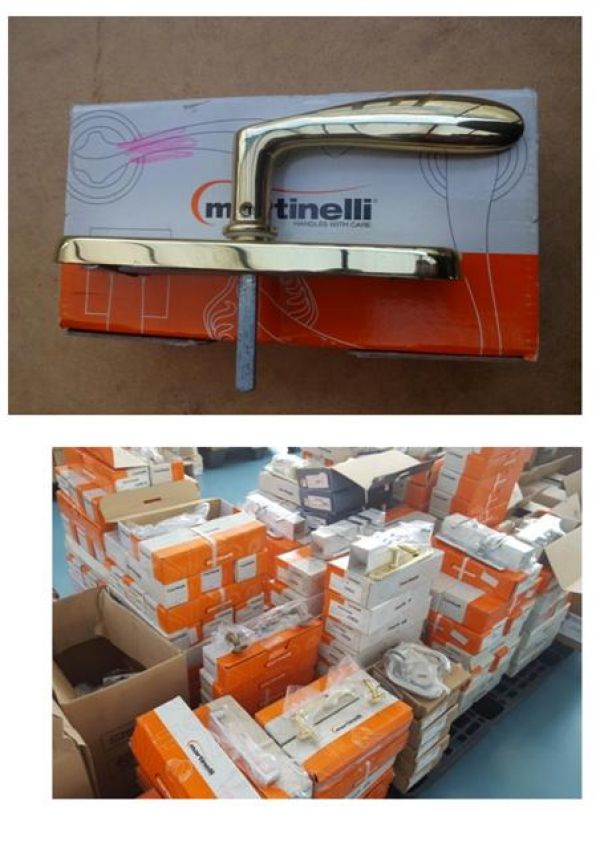 - Stock maniglie in ottone made in italy marca Martinelli per porte e finestre in modelli misti. Tot 7500 pezzi visibili presso i nostri magazzini. Per info e prezzo contattare Bobbi Luca +39 3288535881 o uff. 0744800948