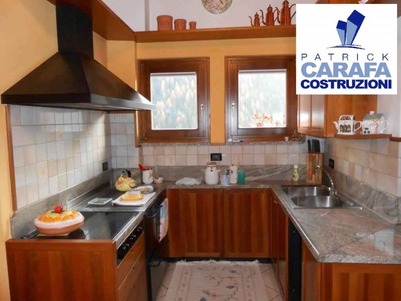 - Posto al terzo e ultimo piano di una casa di sole tre unità abitative, libero su 4 lati, in zona tranquilla e soleggiata, con accesso da strada privata.Sempre abitato,non necessita di nessuna manutenzione o ristrutturazione. Composto da: soggiorno luminoso con accesso ai due balconi, ampia cucina completamente arredata e con stufa a legna inserita nell'arredamento, due camere matrimoniali di cui una con accesso ad un balcone, una camera singola,tutte con pavimento in legno, bagno con doppia finestra, doccia e vasca ad angolo, corridoio di ingresso e ripostiglio.Garage con posto per due auto, cantina, lavanderia il tutto privato e accesso direttamente alle scale interne. Posto auto esterno, terreno coltivabile ad orto, legnaia, giardino comune. Termo autonomo.Buona parte dell'arredamento incluso.