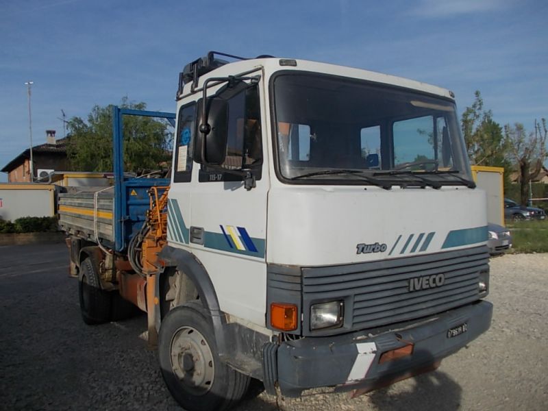 - Autocarro 115.17 passo 3200 mm anno 1985 km 350.000, meccanica perfetta , carrozzeria da sistemare, dotato di gru idraulica Effer mod.8200 2S con prolunga idraulica , con portate:28 q.li a m.2,90 e q.li3,90 a m.11,50, omologazione cestello monoposto , telecomando Cassone ribaltabile dim. 3800 x 2350 mm. Portata utile q.li 34,50, verifiche Ausl e Mctc regolari. Altre info e schede tecniche sul sito www.binigru.it