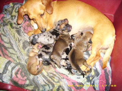 - splendida cucciolata di bassotti standard maculati e fulvi . disponibili x prenotazione sono nati il 20 /05 /20011 saranno disponibili a meta liglio ottimo carattere adattissimi a vivere con bambini in appartamento genitori visibili offresi garanzia veterinaria per maggiori info non esitare a contattarmi teresa 328 8621666 no perditempo solo amanti animali. n.b. 3 femmine maculate 3 maschi color fulvo