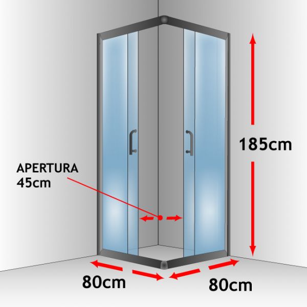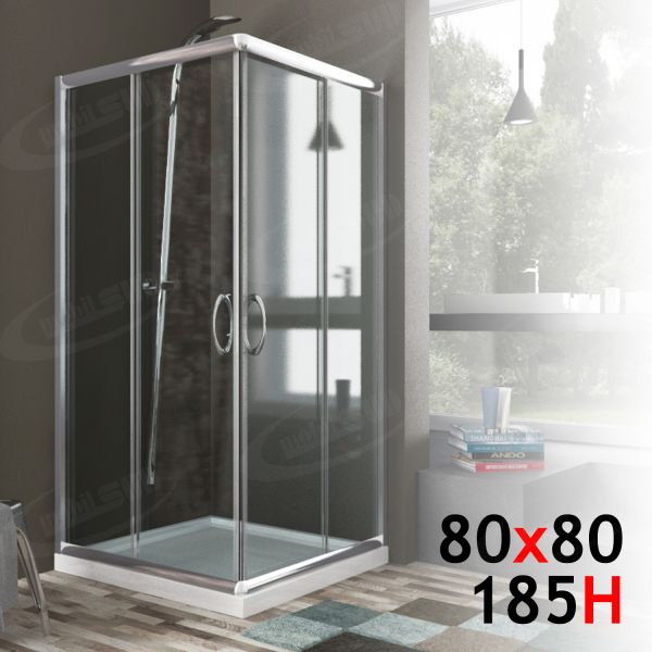 Box doccia bagno 80 x 80 altezza 185 cm vetro trasparente 6 mm apertura sull'angolo mod. Alabama