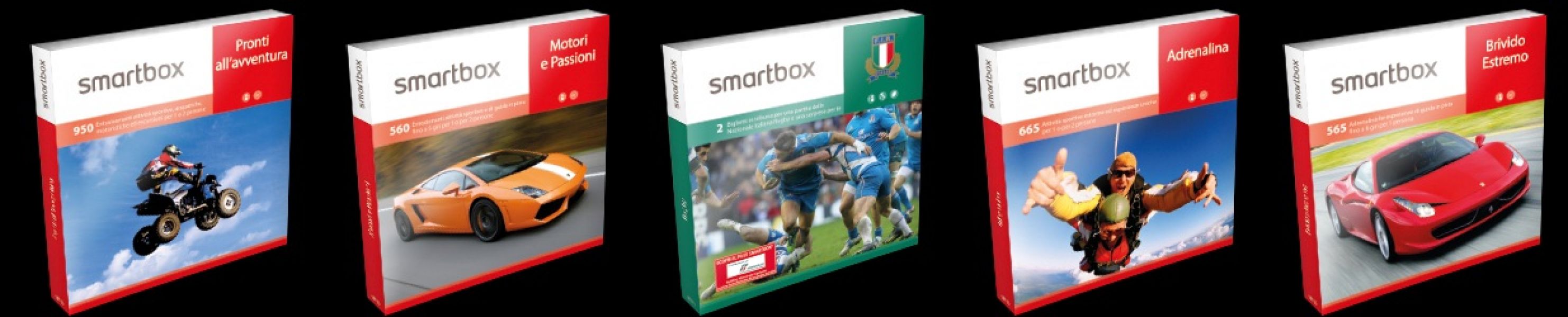 - Il 19 marzo ricorre in Italia la Festa del Papā, fategli un regalo particolare, con le sue passioni di sempre. Regalategli un cofanetto regalo smartbox, la data per la prenotazione e la partenza sono variabili, perchč gli smartbox (questi ed altri) li vendiamo sempre, solo che abbiamo voluto dedicare 'questi' pacchetti per un regalo ai Papa'. Pronti all'avventura 49.90 Nel cofanetto Pronti all'Avventura 950 entusiasmanti attivitā sportive, acquatiche, motoristiche ed escursioni per 1 o 2 persone - 950 attivitā sportive - 1 attivitā - per 1 o 2 persone Motori e Passioni 99.90 Nel cofanetto Motori e Passioni emozionanti attivitā sportive e di guida in pista fino a 5 giri per 1 o per 2 persone - 560 attivitā di guida - 1 attivitā di guida - per 1 o 2 persone RUGBY 99.90 Nel cofanetto Rugby 2 Biglietti in tribuna per una partita della Nazionale Italiana Rugby e 2 mini ball Rugby Adidas Ū - 1 partita - 2 biglietti in tribuna - per 2 persone Adrenalina 159.90 Nel cofanetto Adrenalina 665 Attivitā sportive estreme e esperienze uniche per 1 o per 2 persone - 665 attivitā sportive - 1 attivitā - per 1 o 2 persone Brivido Estremo 189.90 Nel cofanetto Brivido Estremo 565 adrenaliniche esperienze di guida in pista fino a 8 giri per 1 persona - 565 attivitā di guida - 1 attivitā di guida - per 1 persona On March 19, recurs in Italian Father's Day , get him a special gift , with its passions ever. Give them a gift box Smartbox , the date for the booking and departure are variable , because the Smartbox ( these and others) always sell them , just that we wanted to spend 'these' packages for a gift to the Pope ' . Ready for adventure 49.90 In box 950 Ready exciting adventure sports, water sports, motor sports and excursions for 1 or 2 people - 950 sports - 1 activity - For 1 or 2 people Engines and Hobbies 99.90 In the casket Engines and Hobbies exciting sports activities and driving on the track up to 5 rpm for 1 or 2 people - 560 activities guide - 1 driving activities - For 1 or 2 people RUGBY 99.90 In box 2 Tickets Rugby in the stands for a lot of the Italian National Rugby Rugby ball and 2 mini Adidas Ū - 1 game - 2 tickets in the stands - For 2 persons Adrenaline 159.90 In box 665 Adrenalin Activities extreme sports and unique experiences for 1 or 2 people - 665 sports - 1 activity - For 1 or 2 people Far thrill 189.90 In box 565 Extreme Thrill adrenaline-fueled experience of driving on the track up to 8 rpm for 1 person - 565 activities guide - 1 driving activities - For 1 person