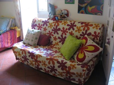 • Vendo per trasloco divano letto matrimoniale, praticamente nuovo, fodera fiori lavabile, 90 Euro. Da venire a prendere in zona Piazza Farnese.