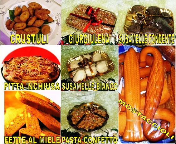 - Accompagna le tue festività di fine anno con le tipicherie del Natale calabrese: le susamelle al cioccolato, la Pitta ‘mpigliata (o ‘nchiusa), i crustuli, la pasta confetto, il torrone di sesamo (giurgiulena), i mostaccioli….un assortimento esclusivo, utile ed opportuno anche per poter “caratterizzare” in maniera esclusiva le tue ceste di gastronomia. www.saporidellasibaritide.it