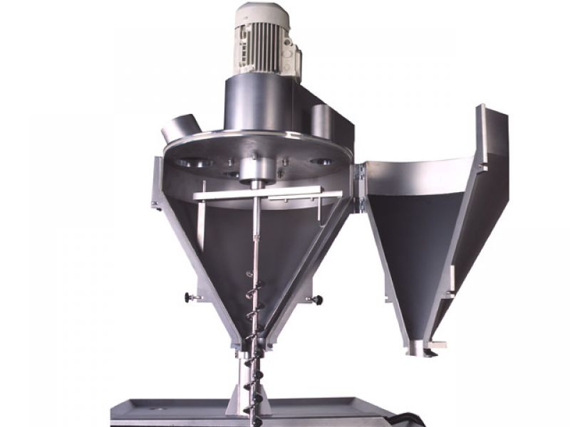 - Dosatore volumetrico a coclea verticale per prodotti non scorrevoli in polvere quali farine, cacao, zucchero a velo, spezie macinate, caffè macinato fine, prodotti chimici, premiscelati per edilizia, per gelati o sorbetti, etc. • Solida struttura in acciaio Inox con base carrellata Piano di appoggio busta regolabile in altezza • Tramoggia di carico prodotto con portello di ispezione in acciaio inox AISI 304 • Operazione di riempimento tramite pedale a funzionamento elettrico • Quadro elettrico con PLC PER INFO 3489112030 ALESSANDRO DE BORTOLI