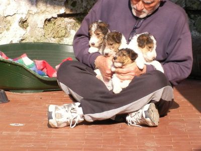 - Fox Terrier pelo ruvido, cuccioli figli di campioni, genitori visibili in allevamento. Disponibilità di tre maschi e una femmina, età due mesi, sverminati, vaccinati, microchip, iscrizione anagrafe canina e microchip. Per info telefonare o via mail.