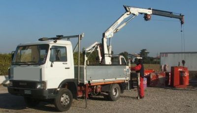 - Gru idraulica Bonfiglioli 7200 L 2S retrocassone, anno 1997, a normative CE, max sbraccio a m.6,99 con 490 Kg, verricello, 4 piedi stabilizzatori, montata su Iveco 79.12 anno 1991, cassone fisso dim. 3200 x 2400 mm, revisione MCTC e AUSL anno in corso regolari. Altre info e schede tecniche sul sito www.binigru.it alla sezione usati