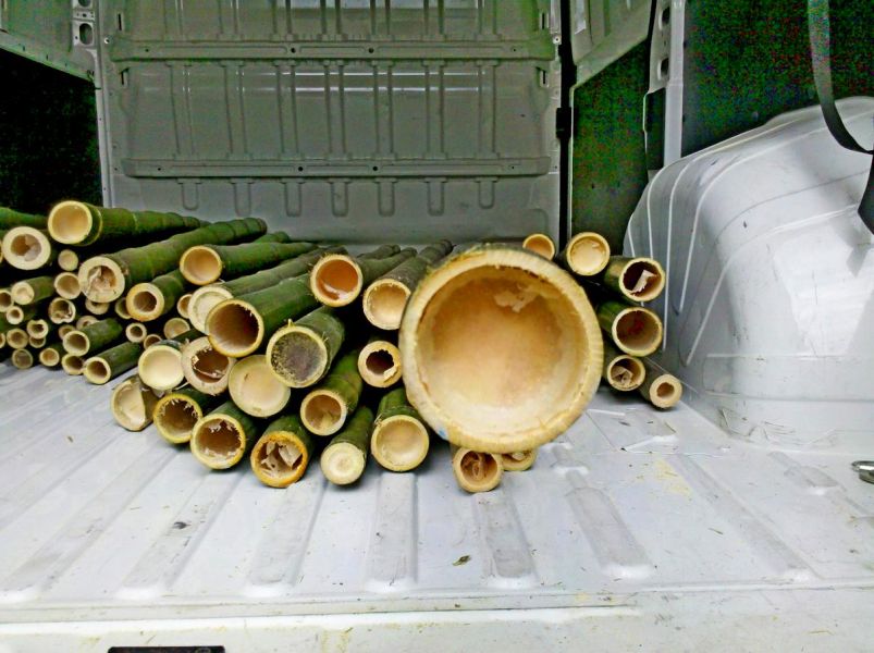 - Canne di bambł bamboo bambu da bambuseto di 10.000 mq. vendo sia stagionate che appena tagliate. Prezzi: - diametro 1 a 4 cm. c.a. 1,00 euro mt.lineare. - diametro 5 a 7 cm. c.a. 3,00 euro mt.lineare. - diametro 8 a 10 cm. c.a. 5,00 euro mt.lineare. Effettuo il taglio delle canne con le misure del Cliente in relazione alle esigenze/progetti ed effettuo il trasporto in tutta Italia a mezzo corriere espresso. I costi, del taglio a misura e del trasporto, variano in funzione della quantitą e del luogo di destino. Per i diametri di 1-2-3 cm. applico sconto 30% per quantitą (minimo 100 canne/pezzi). Enrico 335-6390783