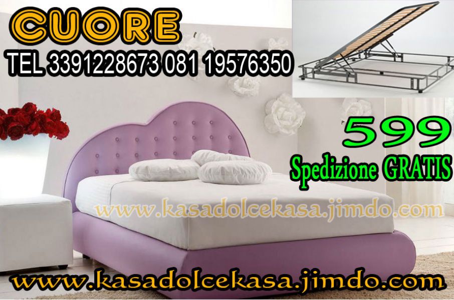 - Letti singoli e matrimoniali con struttura e meccanismo brevettato Ortopedico con ammortizzatori a gas e rete a doghe Testiere con bottoni svaroski o ecopelle Singolo 499 euro 1 Posto e 1/2 & Matrimoniale 599 Euro Spedizione inclusa LAVORAZIONE MADE IN ITALY Pagamento:Bonifico Bancario-Paypal(L'ordine viene evaso dopo pagamento) non si accetta contrassegno TEL 08119576350 3391228673