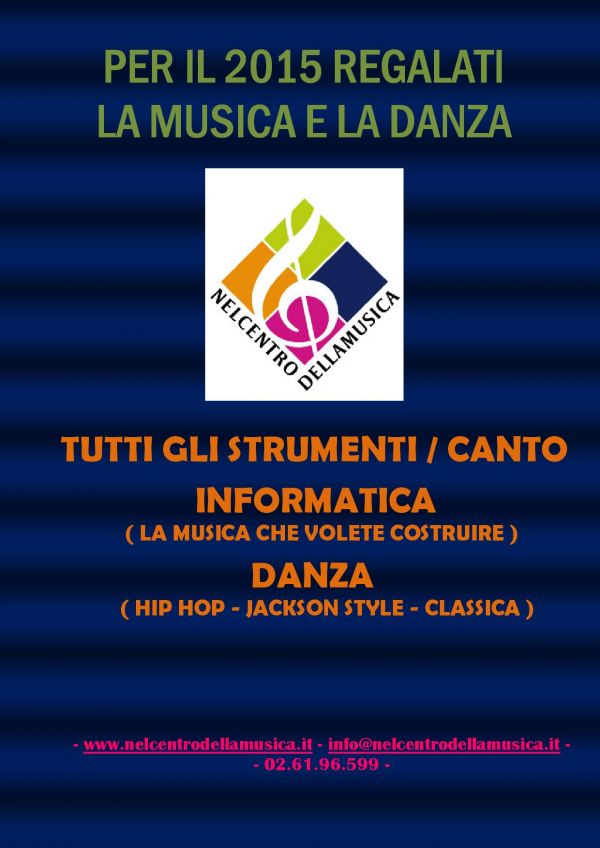 - NEL CENTRO DELLA MUSICA: tutti gli strumenti/canto - Informatica (La Musica che volete costruire) -Danza (Hip- Hop /Jackson Style / Classica)