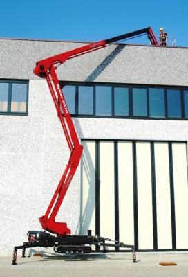 - Piattaforma aerea cingolata, con doppia articolazione e braccio telescopico a uno sfilo + jib., cestello portapersone in alluminio applicato all'estremità del jib, con sistema di livellamento automatico completamente idraulico, stabilizzazione variabile da 2,5 a 3,8 m.; motore termico a benzina monocilindrico Honda, carro allargabile, radiocomando su tutti i movimenti, elettropompa 220 V, linea aria/acqua e linea 220 V. in navicella, navicella biposto con rotazione 90°+90°, n.4 stabilizzatori idraulici a discesa diretta. CARATTERISTICHE TECNICHE: H max di lavoro m 21,70; H piano di calpestio m 19,70; sbraccio max di lavoro m 10,30; angolo di rotazione torretta 365°; portata max navicella kg 200; Controllo automatico di sbraccio, dimensioni cestello mm 1500 x 700, lunghezza richiusa mm. 5975, senza navicella mm. 5280, larghezza minima richiusa mm. 1000, altezza minima richiusa mm 2065, ingombro stabilizzazione min. mm 2570 x 5050, max. 3870 x 3940, peso totale kg. 3000 Altre info e schede tecniche sul sito [URL]http://www.binigru.it[/URL]