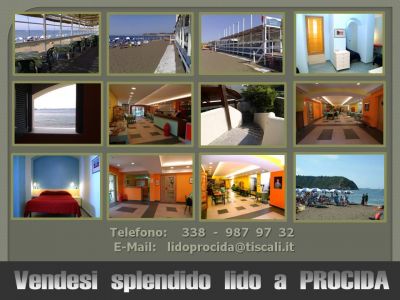 - Privato vende nella meravigliosa cornice dell’ ISOLA DI PROCIDA attrezzatissimo LIDO TURISTICO situato sulla spiaggia più famosa e frequentata dell’ isola. Superficie totale 1.800 mq. La struttura è fornita di tutte le licenze ed il necessario per essere da subito operativa. E’ un business NON da avviare quindi, ma da subito attivo, senza perdite di tempo burocratiche e costi di ristrutturazione. La struttura è dotata di ogni confort in posizione privilegiatissima, da cui si gode una splendida vista sul mare. Tramonti da sogno. Il lido sorge direttamente sul mare, in località PROCIDA ( NA ).Vicinanze Ischia, Capri. Ottimamente collegata. La struttura è stata totalmente e finemente ristrutturata nel 2008. PREZZO: €. 3.000.000 (Tre milioni) Contatto: PRESUTTO Tel.: 338 - 987 97 32 Mail.: lidoprocida@tiscali.it