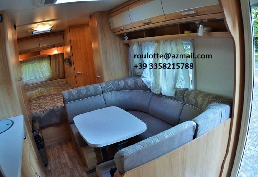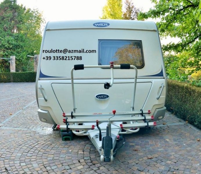 • Roulotte Caravan Wilk Vida 700 DM con 3800 km dell'anno 2013, unico proprietario. Usato SOLO da 3 persone per un unico viaggio da Milano fino Santiago de Compostela (Spagna), con la durata di 5 settimane. Pranzi e cene sempre in veranda. Accessori: - 6 portabici modell Pro Bike 300 - Cavo 220, tubo acqua, tavolino 160 - Pronto-letto matrimoniale e letti a castello - Serbatoio h2o supplementare, serbatoio acqua 100 lt, portagomma diritto filettato 3/8' X 12 - Veranda fiamma f45 4,5 m - Condizionatore FJ2200 STD - Specchi per macchina - Pannello solare - Kit pannello TV 100 Watt - Pannello controllo tensione batteria - Caricabatteria - Parabola 680 con decoder Sky - Parabola satellitare ASR 680 - TV 16 pollici - Mouver TE R - Doppio asse con pneumatici 185/65 R14 (85M) - Lunghezza 8942 m - Larghezza 2500 m Informazioni: roulotte@azmail.it +39 3358215788