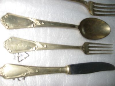 - Servizio posate in alpacca per 12, 12 cucchiai,forchette,coltelli 12 cucchiai,forchette,coltelli, da frutta 12 cucchiaini da caffè 1 Mestolo,1 cucchiaione, 1 forchettone, 87 pezzi in totale, € 150