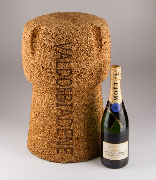 Sgabello in sughero riciclato a forma di tappo da spumante gigante