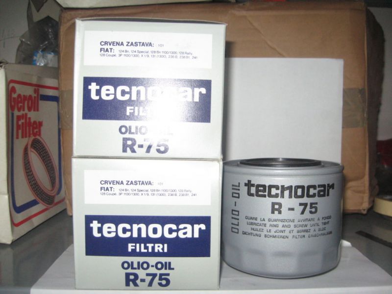 • Stock di FILTRI OLIO TECNOCAR R-75 (Sostituito da R124 il 24/02/2012) ALFA–ROMEO,FIAT,INNOCENTI,LANCIA,SEAT,ZASTAVA 2 € la unità +spese di spedizione, Sono ricambi nuovi d'epoca (fondi di magazzino)