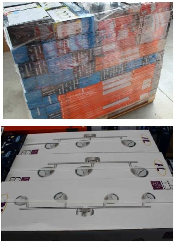 - Stock di articoli di illuminazione per interno: lampade sottopensili, lampade led, lampade per bagno, faretti led e tanto altro misti in modelli e tipologie. Totale 3365 pezzi disposti in 13 pallets Per info su prezzo ed altro contattare il Sig. BOBBI LUCA al 328/8535881 o i nostri uffici allo 0744/800948