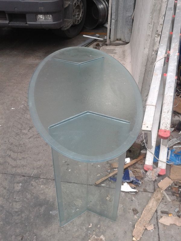 - Originali tavolo e specchiera in vetro; specchiera con sostegno in acciaio,il tavolo in vetro invece pur molto bello e particolare necessita di restauro di mani esperte perche' 'sbeccato' nella zona gambe,oggetti comunque molto originali