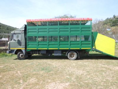 - NISSAN L 80 trasporto animali/ /cavalli patente C, declassato a q.74.90.per viaggiare sempre. q.28 di portata 6 cilindri freni ad aria cabina ribaltabile 5 mt di zona animali pareti in alluminio. (bella massiccia anche per bovini) fondo in alluminio zigrinato a vasca con serbatoio e scarico per urine, tappetti in gomma da un cm ( asportabile.) porta dx per ispezione. rampa posteriore con 4 molle ,paratie per salita animali in compensato marino ( OKUMé) 5 separè (smontabili) per 6 posti ,comodi per cavalli, altezza ok anche per secondo piano. per capreni e ovini. valuto permute per parte dell'importo. se interessati invio altre foto. possibilità anche di vendita separata solo furgonatura o solo motrice. tel 3475793961.