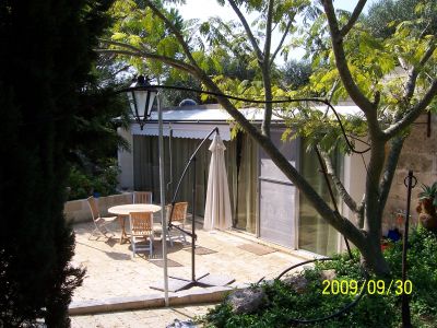 - Nella masseria(8000mq di terreno) ci sono 3 fabbricati indipendenti . questo veniva utilizzato per i greggi di pecore. Restaurato, sul lato frontale è stata applicata una grande vetrata (9mx2,60) per valorizzare la muratura frontale, con grandi tende esterne per proteggerla dal calore del sole e tende interne in iuta per la privacy. nell'interno sono stati mantenuti i soffitti con volte a stella in tufo a vista; i pavimenti sono in cotto.Da tale edificio sono stati ricavati : -3 vani comunicanti, per la cucina, la zona pranzo e il soggiorno (con divano/letto a due posti); - bagno con doccia -camera con letto matrimoniale,armadio a muro e 2' bagno di servizio. 2 condizionatori/pompe di calore e cassaforte. Adatto a una famiglia di 4 persone, o due coppie che condividano la cucina e la zona pranzo. Davanti a tale edificio è stata ricavata unarea con ombrellone da sole , tavolo e sedie in legno. disponibili per tutti un campo da tennis ,ed un grande gazebo coperto in legno
