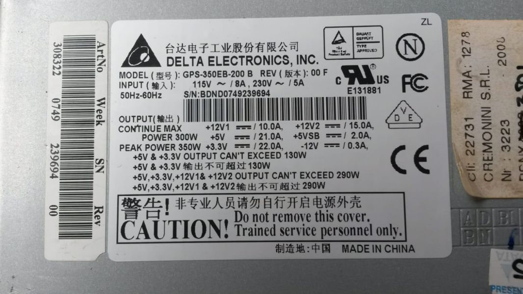 • 6 Alimentatore per pc funzionanti €.30 Alimentatore Pc Delta Electronic mod.gps-350eb-200 con attacchi sata. €.10 Astenersi:perdi tempo e ribassisti- contato solo telefonico cel.3396604713