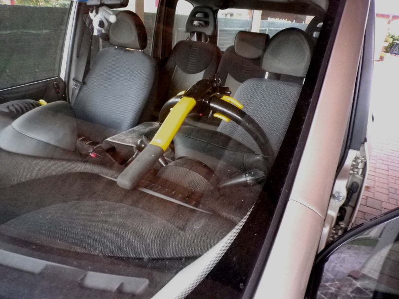 - Vendo staffa blocca volante per auto e furgoni, antifurto sicuro e semplice da inserire e togliere. Ad un semplice movimento per toglierlo, se attivato, suona una sirena inserita al suo interno e disattivabile con telecomando. Se non si sgancia con la sua chiave non si può guidare,quindi non può essere rimosso il mezzo. Funziona con una pila 9v. inserita dentro, fa molto da deterrente, perche è visibile dall’esterno. Causa doppione lo vendo, è interessantissimo per la sicurezza del mezzo.