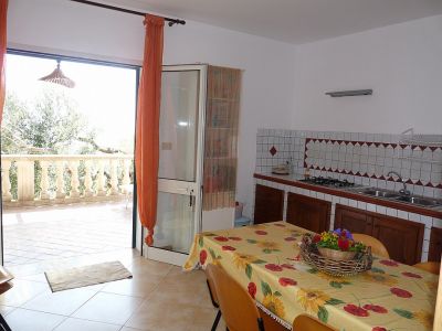 - Bellissimo appartamento in villa posto al primo piano, immerso nel verde degli ulivi secolari situato a 450 mt dal mare in zona tranquilla dove trascorrere le vacanze in completo relax. L'appartamento si compone da: due camere da letto di cui una matrimoniale e l'altra con letto a castello e lettino, sala da pranzo con angolo cottura, bagno ed una bellissima veranda che fa da complice, per godere lo splendido panorama del mare cristallino. Sulla parte anteriore della casa; parcheggio macchina di pertinenza, barbecue, docce esterne, angolo lavanderia in comune e 2000 mq di giardino dove poter respirare l'aria pura della macchia mediterranea. L'appartamento è inoltre corredato di pentole, stoviglie varie, zanzariere, sedie a sdraio. Non sono compresi biancheria da bagno e da letto. Nelle vicinanze sono disponibili ristoranti sul mare, pescherie per gustare il buon pesce appena pescato. Il paese piùvicino dista circa 2 km.