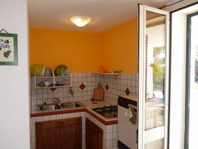 - Bellissimo appartamento in villa a pian terreno, immerso nel verde degli ulivi secolari situato a 450 mt dal mare in zona tranquilla dove trascorrere le vacanze in completo relax. L'appartamento si compone da: una camera da letto matrimoniale e l'altra con letto a castello, sala da pranzo con angolo cottura, bagno e grande spazio dove trascorrere bellissime serate all’aperto. Sulla parte anteriore della casa; parcheggio macchina di pertinenza, barbecue, docce esterne, angolo lavanderia in comune e 2000 mq di giardino dove poter respirare l'aria pura della macchia mediterranea. L'appartamento è inoltre corredato di pentole, stoviglie varie, zanzariere, sedie a sdraio. Non sono compresi biancheria da bagno e da letto. Nelle vicinanze sono disponibili ristoranti sul mare, pescherie per gustare il buon pesce appena pescato. Il paese più vicino dista circa 2 km.