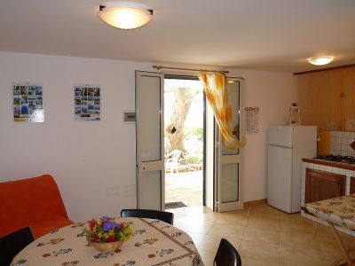 - Bellissimo appartamento in villa a pian terreno, immerso nel verde degli ulivi secolari situato a 450 mt dal mare in zona tranquilla dove trascorrere le vacanze in completo relax. L'appartamento si compone da: una camera da letto matrimoniale e l'altra con letto a castello, sala da pranzo con angolo cottura, bagno e grande spazio dove trascorrere bellissime serate all’aperto. Sulla parte anteriore della casa; parcheggio macchina di pertinenza, barbecue, docce esterne, angolo lavanderia in comune e 2000 mq di giardino dove poter respirare l'aria pura della macchia mediterranea. L'appartamento è inoltre corredato di pentole, stoviglie varie, zanzariere, sedie a sdraio. Non sono compresi biancheria da bagno e da letto. Nelle vicinanze sono disponibili ristoranti sul mare, pescherie per gustare il buon pesce appena pescato. Il paese più vicino dista circa 2 km.