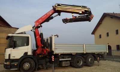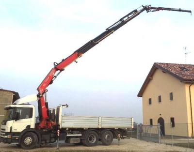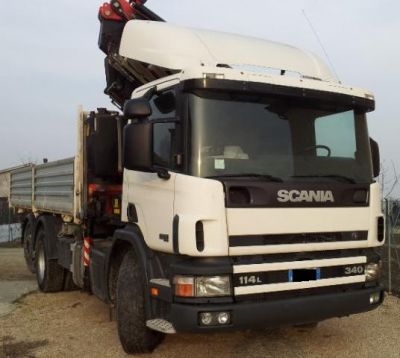 - Autocarro Scania CP114LB 340cv, usato, anno 2001, rimorchiabile, portata utile q.li 85, Km 320.000, Euro 3, dotato di gru Fassi F310 AXP.26 L214, anno 2007, 6 sfili sulla gru base, prolunga idraulica a 04 sfili, massimo sbraccio orizzontale m 26,70 con q.li 2,85, in verticale m 30,00 con q.li 6,00, distributore Danfoss, radiocomando RCS con display, prolink su gru base e prolunga idraulica, ribaltabile da m 6,20 x 2,55 sponde in TR5. Perfetto, collaudi MCTC e AUSL regolari. Altre info e schede tecniche sul sito www.binigru.it alla sezione usato