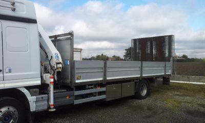 - Autocarro Mercedes 12.23 cabina letto, anno 1999 ottime condizion1, Km 640.000, portata utile 40 q.li, ptt 115 q.li. Dotato di gru Bonfiglioli P7200 3/S, max sbraccio m.8,70 con 630 kg, a m. 3,68 con kg 1730, cassone in acciaio inox con rampe idrauliche pieghevoli, verricello, lunghezza cassone m 6,30. Altre info e schede tecniche sul sito www.binigru.it alla sezione usato