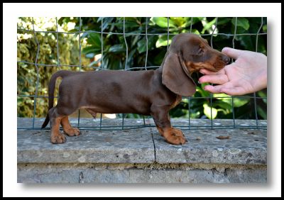 - Allevamento riconosciuto Enci dispone per la cessione di un cucciolo maschio di taglia nana a pelo corto con mantello cioccolato focato. Ha due mesi e mezzo. Il cucciolo dal carattere estremamente dolce ed equilibrato è morfologicamente molto corretto e è ceduto con pedigree italiano Enci, profilassi vaccinale, microchip e registrazione asl con documentazione di cessione, sverminazioni e controlli veterinari. Astenersi perditempo. Informazioni solo via telefonica senza impegno. NON CEDIAMO CUCCIOLI PRIVI DI PEDIGREE. I GENITORI HANNO DNA DESPOSITATO. LE FOTO SONO DEL VERO CUCCIOLO DISPONIBILE.