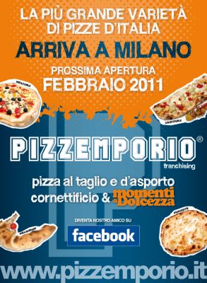 - L'IDEA INNOVATIVA DI PIZZEMPORIO Pizzemporio è la nuova generazione di pizzerie. L'unicità dell'idea Pizzemporio si basa sulla proposta di un MENU PIZZA innovativo che esce fuori da tutte le regole della pizzeria tradizionale. Oltre 1000 tipi di pizze, oltre 500 ingredienti e la particolarità di classificare le pizze per forma e per presentazione in oltre 30 diverse categorie. Per questo Pizzemporio è unico nel suo genere e stupisce con un concetto di pizzeria nuovo ed innovativo. Il mercato della pizza è cambiato e le nuove generazioni sono alla continua ricerca di novità e nuove dimensioni di gusto. Oggi PIZZEMPORIO è l'unica risposta concreta alle nuove esigenze del mercato. Se sei interessato al nostro franchising contatta il numero 3409991110 oppure manda una email a info@pizzemporio.it con il tuo recapito telefonico e sarai ricontattato. Specifica la città di tuo interesse. WWW.PIZZEMPORIO.IT