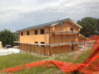 - Casa abitabile realizzata con travi e pilastri in lamellare, pareti con tavole ad incastro blockhouse da 100mm.Tetto coibentato e ventilato con pannelli sulpol. Cappotto per isolamento termico esterno da 10cm finitura effetto muro. Completo di infissi, ferramenta e guaina di copertura del tetto. Costo da 650 €/mq compreso trasporto e montaggio