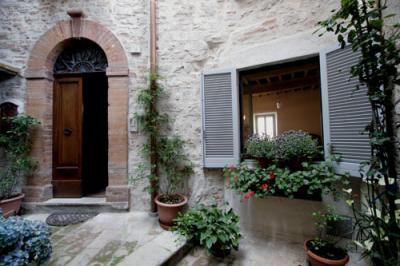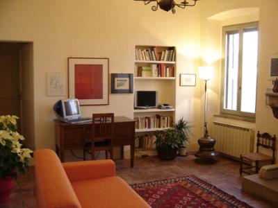 - Questo appartamento è all’interno di una casa romana e medievale posta su 3 livelli e suddivisa in soli 2 appartamenti. La casa sorge in un angolo caratteristico della città, a pochi passi dalla piazza. Passando attraverso un arco, si arriva in un bel cortile dove si affaccia la casa con il suo ballatoio tipico. Luminosissimo, l’appartamento si affaccia su un giardino privato, vicoli silenziosi e non attraversabili da auto, e scopre sulle colline verdi che si allungano verso est. L’appartamento è stato restaurato nel 2006 utilizzando materiali originali e pitture in calce: pavimenti in cotto originale, solai con travi massicce e pianelle, camini in pietra serena nel salone e nella cucina. Qui visse nei prima anni del 20° secolo un pittore locale rinomato per i suoi affreschi dei soffitti di palazzi storici e religiosi. Nella seconda metà del 20° secolo ci visse una poetessa e scrittrice premio Pulitzer