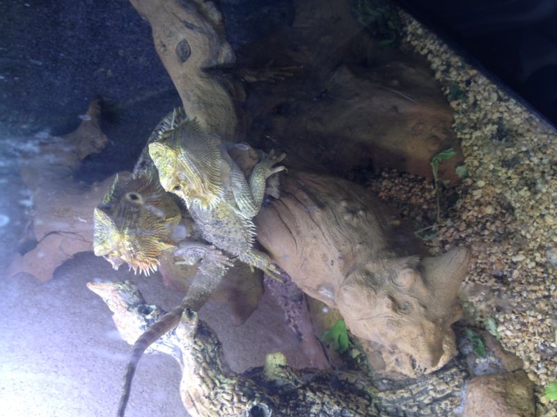 Coppia di Draghi Barbuti, teca arredata e mobiie