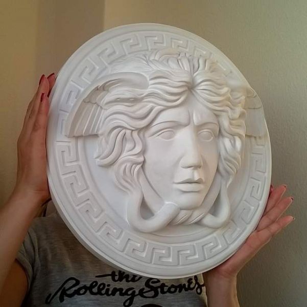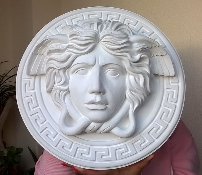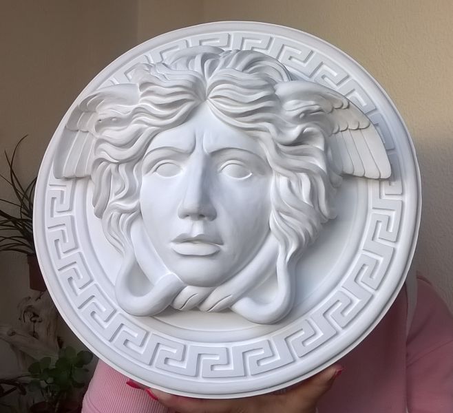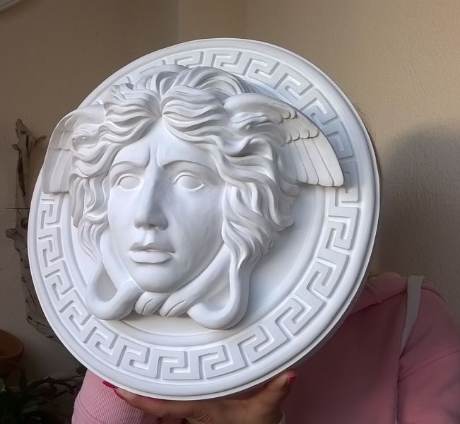 - Scultura di Medusa della mitologia, modello tipo Versace diametro 38 cm, pronta da appendere con aggancio sul retro, interamente lavorata a mano dall’artista, firmata, bianca tipo biscuit in purissimo gesso alabastro, diametro 38 cm. Vendo questa scultura causa rimanenza restauri artistici decorativi. Mirella 3454451685