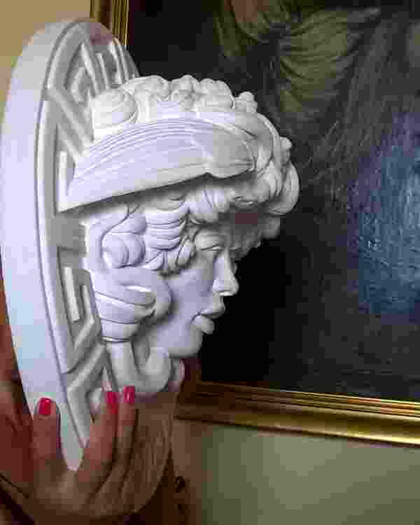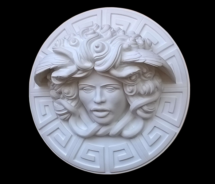 - Scultura classica della mitologia di Medusa. pronta da appendere con aggancio sul retro . Medusa, “protettrice”, “guardiana” di dimora, Decorazione di pregio ideale per valorizzare ogni tipo di ambiente sia moderno sia classico. La scultura è interamente lavorata a mano da l’artista che l’ha firmata, eseguita in purissimo gesso alabastro, diametro 45 cm. Vendo questa scultura causa rimanenza restauri artistici decorativi. Mirella 3454451685